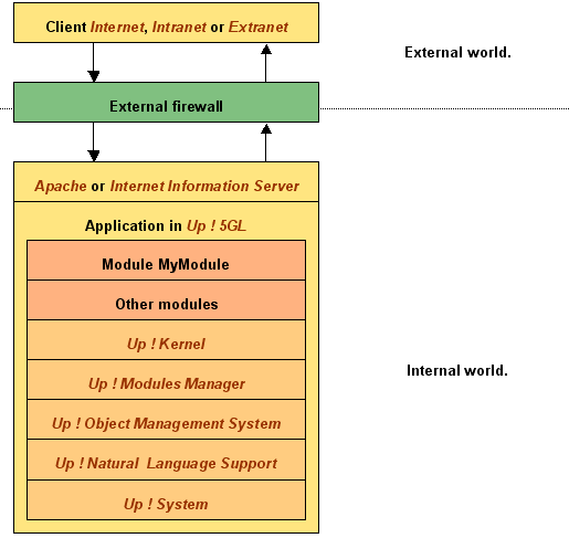 The remote access can be applied to any call (procedure, function or method), any type and any object (module, warehouse, exception and variable). The localization of the server is done by Up ! Object Request Broker and the communication is made by Up ! Network.